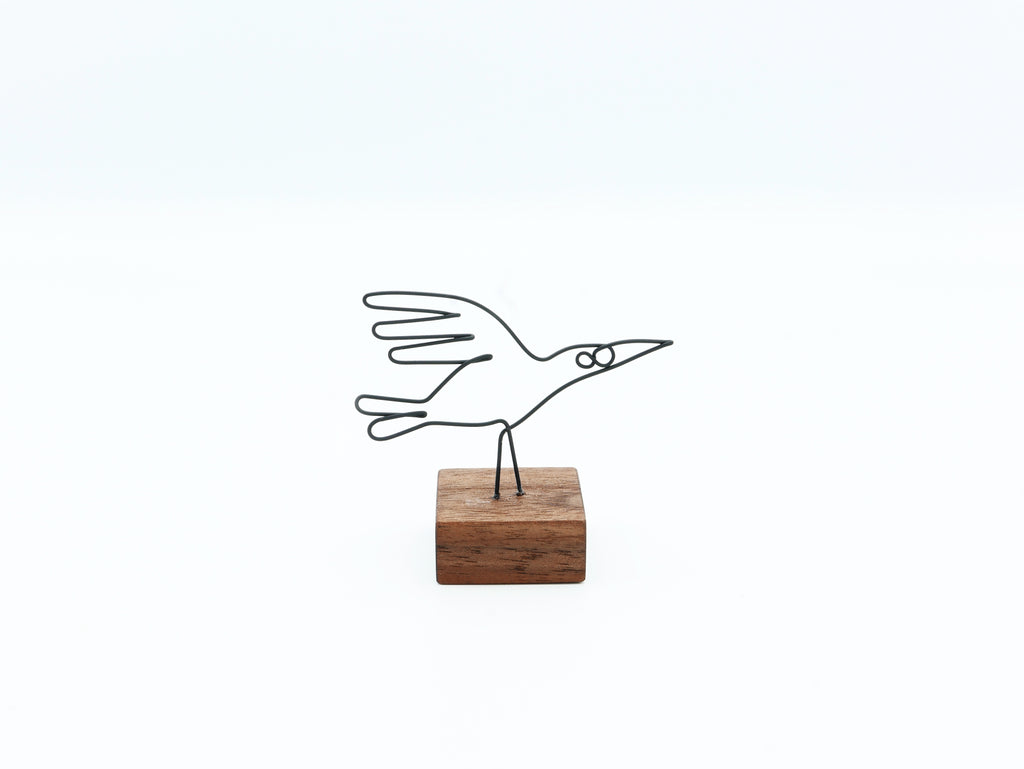 一筆書きのようにワイヤーで作られるのは、主に鳥や人物。