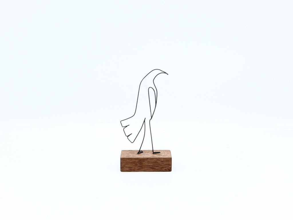 一筆書きのようにワイヤーで作られるのは、主に鳥や人物。