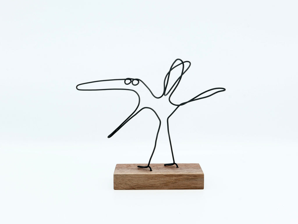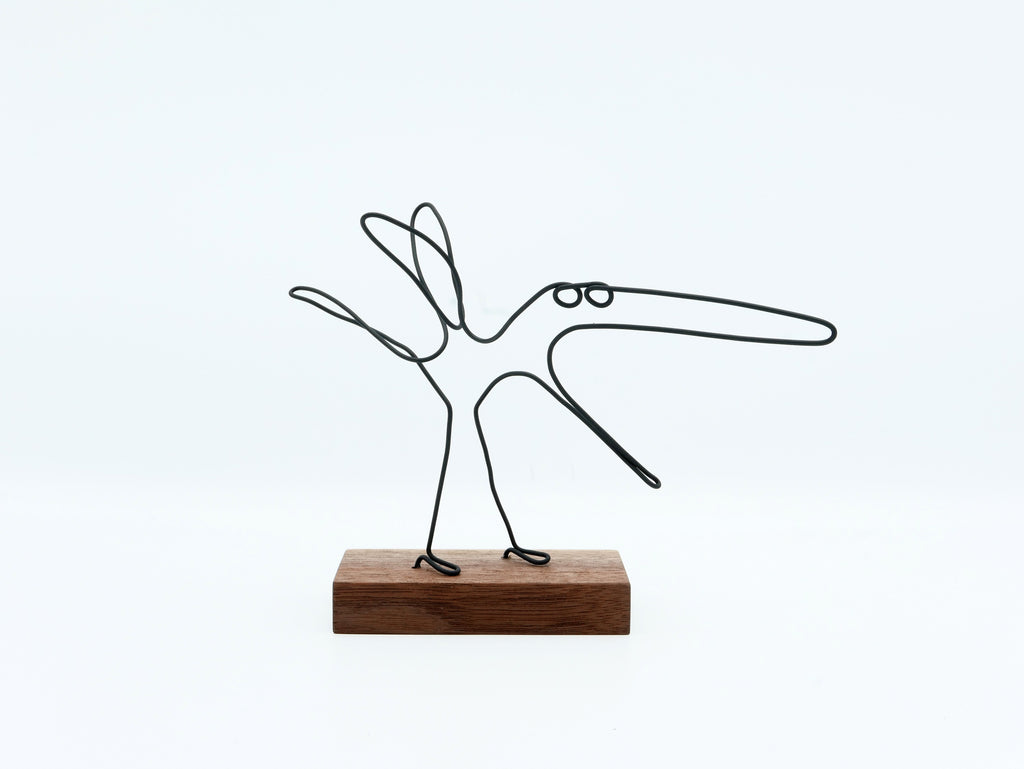 一筆書きのようにワイヤーで作られるのは、主に鳥や人物。