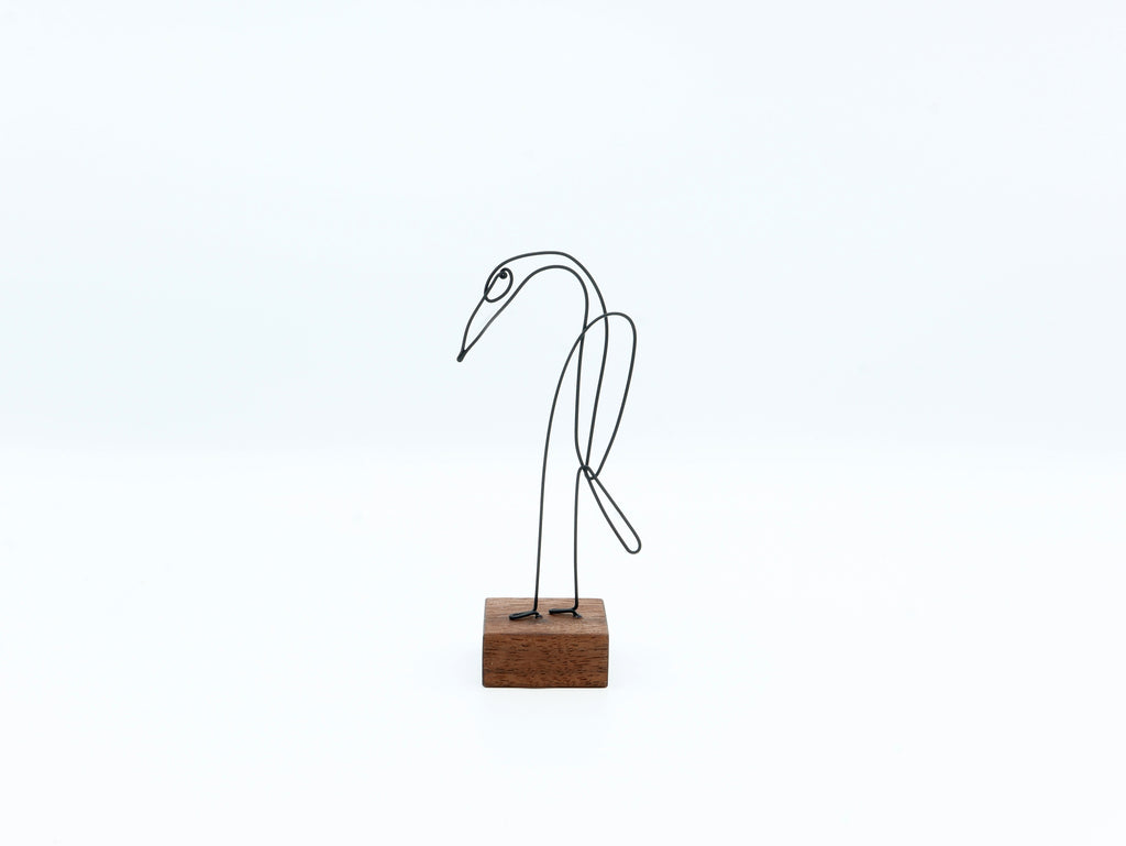 一筆書きのようにワイヤーで作られるのは、主に鳥や人物。
