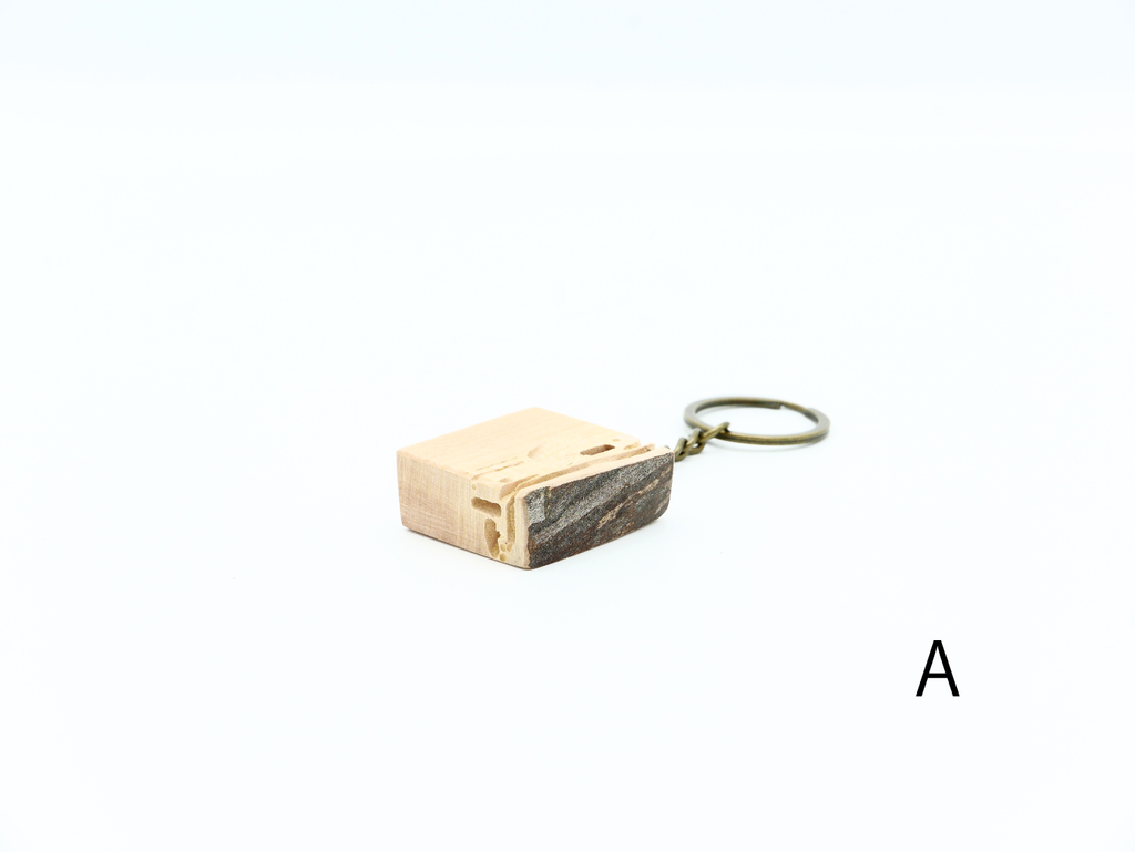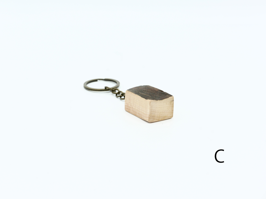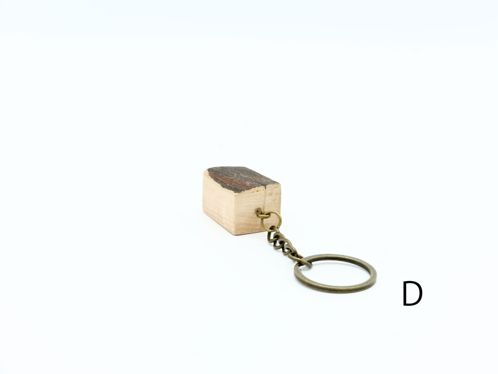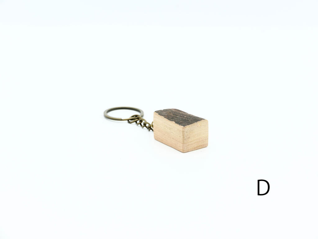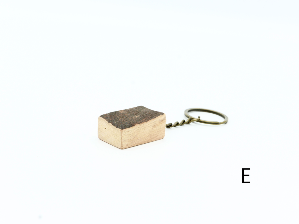 ハナレオリジナルブランド「MUKU ten.mini」の「ハシキレ」キーホルダー。こちらは樹皮を残した耳付きタイプの小です。