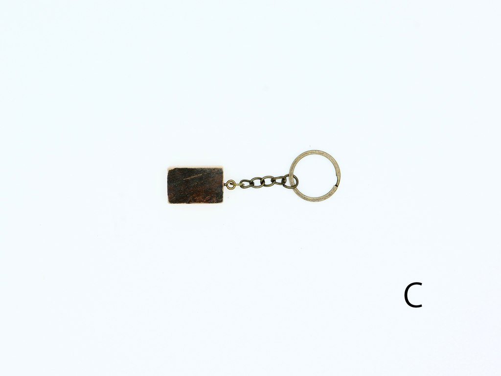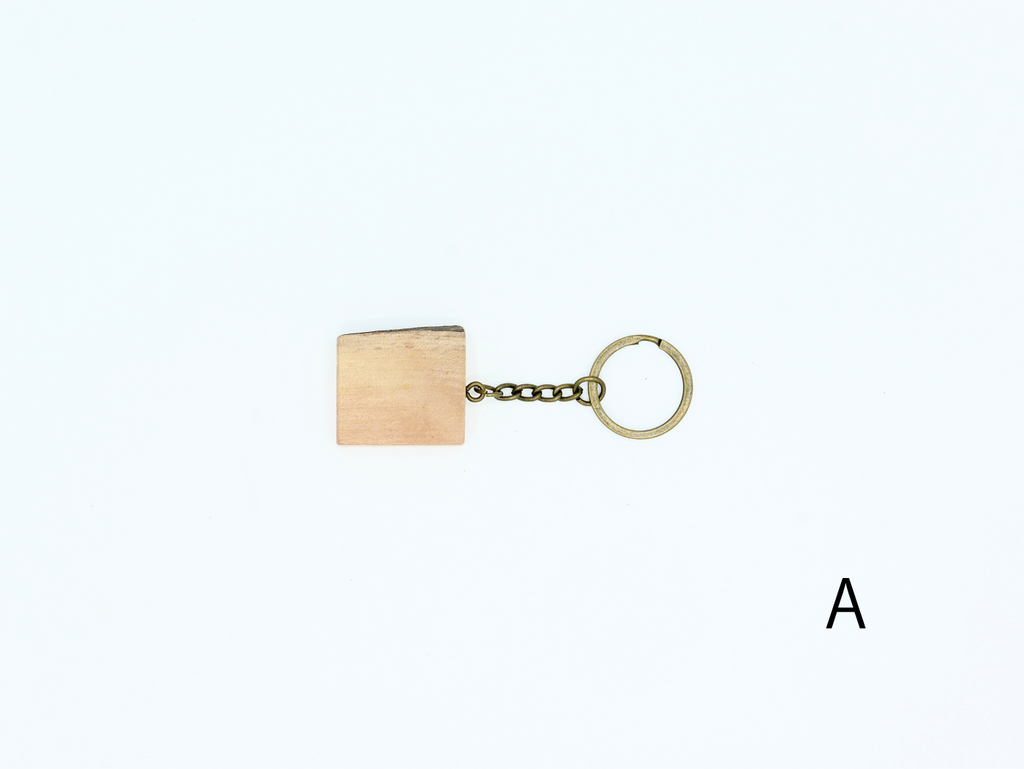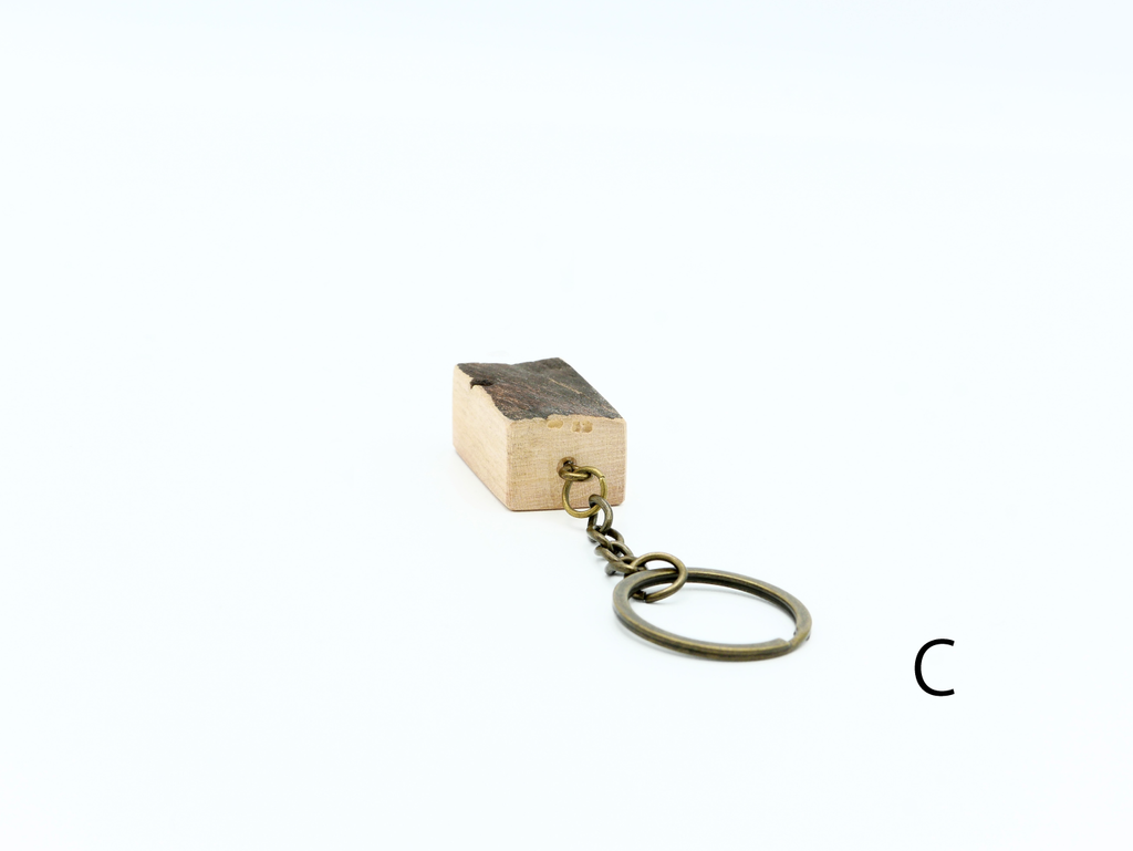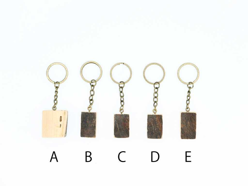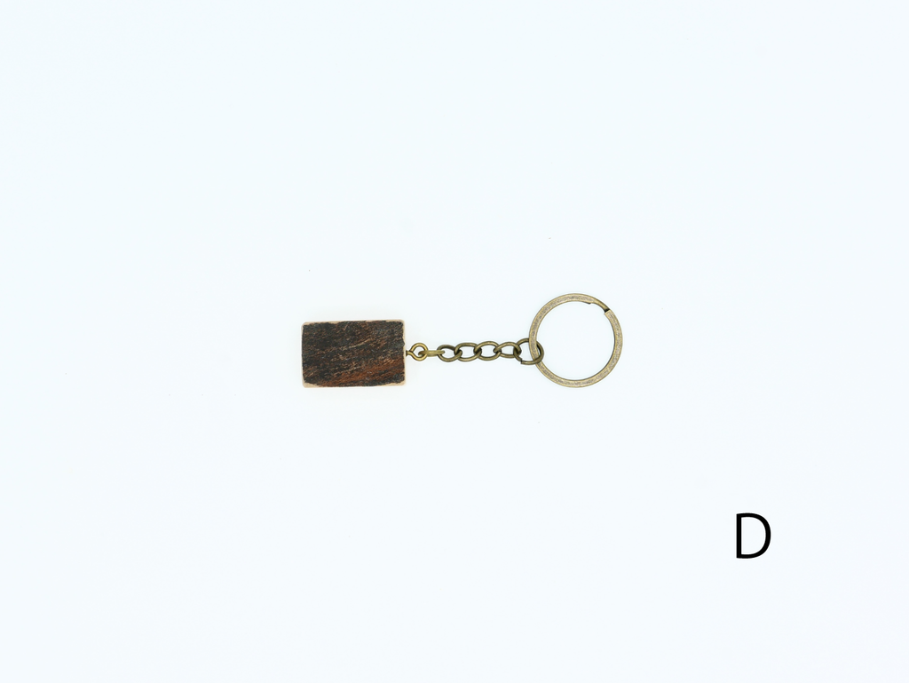 ハナレオリジナルブランド「MUKU ten.mini」の「ハシキレ」キーホルダー。こちらは樹皮を残した耳付きタイプの小です。