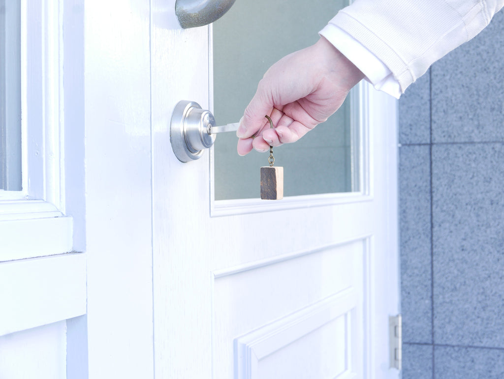 無垢材の木製家具や木製小物を多く取り扱う当店らしく、小さな「木」のチャーム付き。